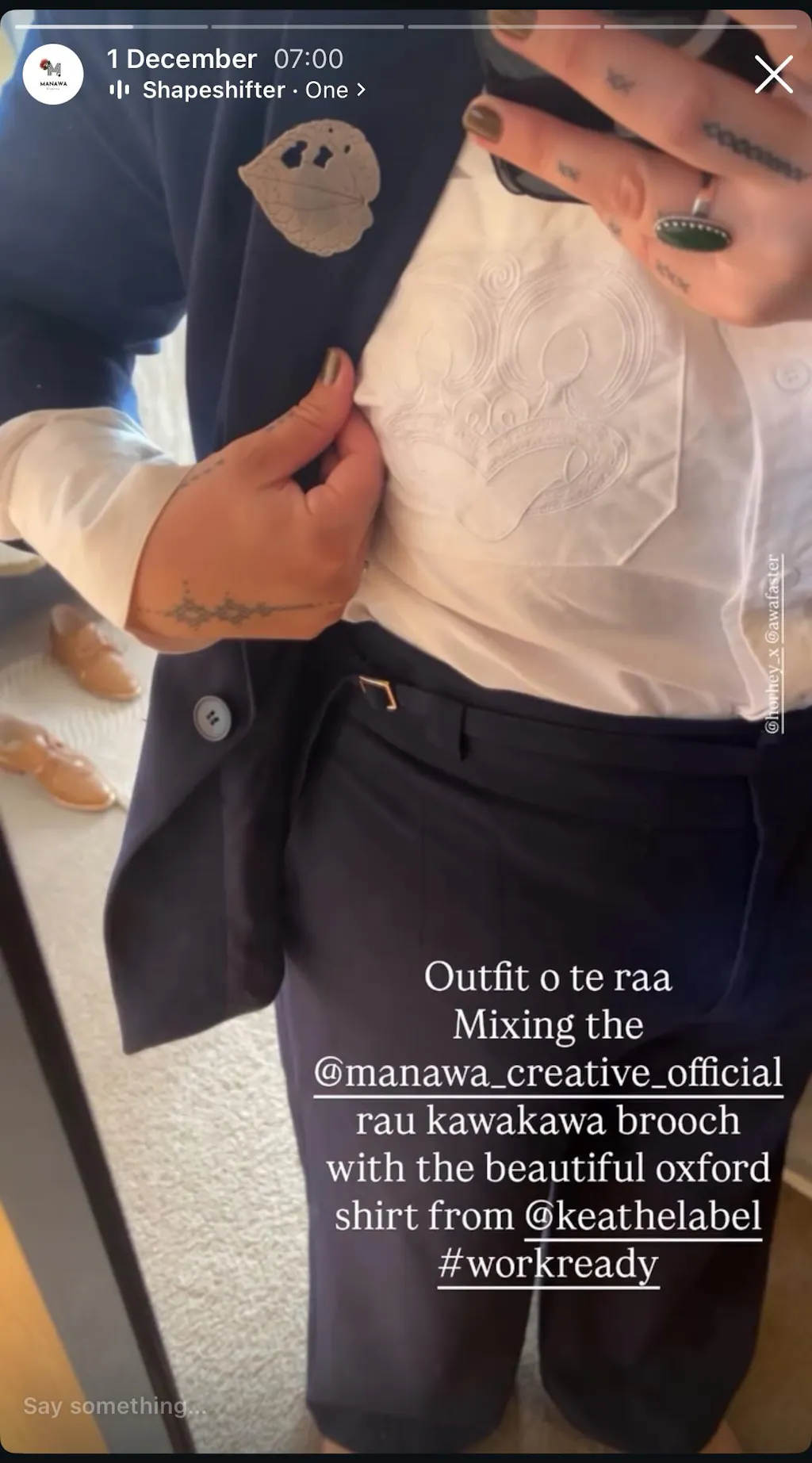 My absolute favourite white button up shirt (and I have many!). The fit is fantastic. The fabric is quality. The Maaori motif is subtle and so beautifully designed and placed.